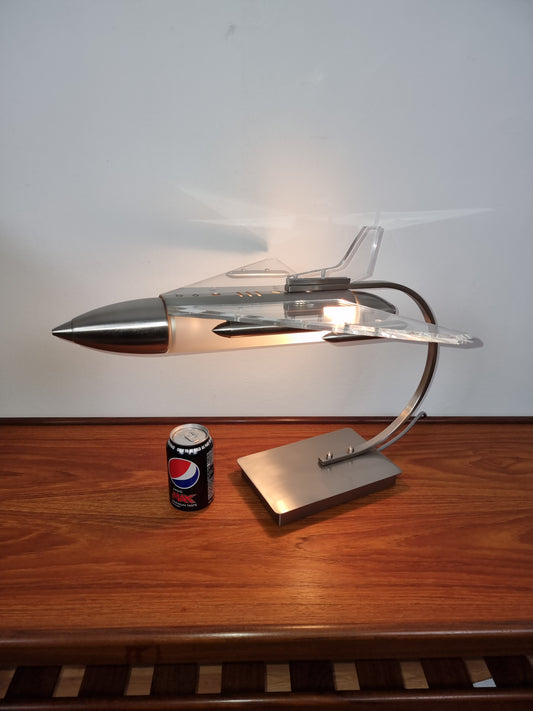 1980s Steel and clear Perspex retro jet plane table lamp