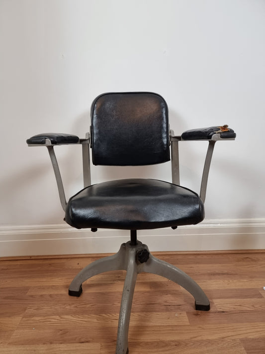 1950's Vintage Vinyl & Steel Swivel Desk/Engineer/Draughtsman Chair by Tan-Sad