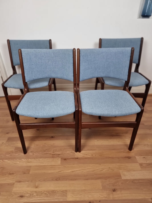 4 X Teak MCM Danish Dining Chairs with wool By Erik Buch Model 89