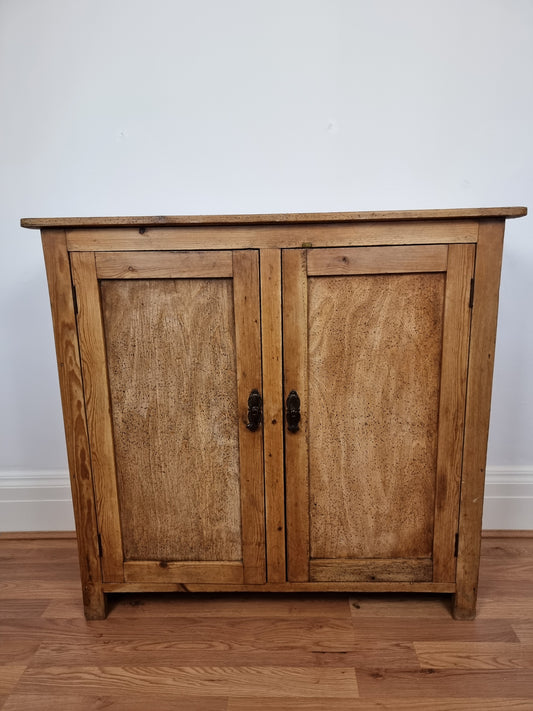 Antique Victorian pitch pine school cupboard / bookcase low linen Press