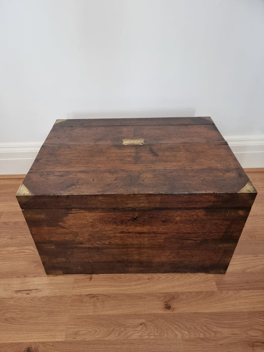 Antique Victorian Camphor Wood & Brass Campaign Trunk/Chest